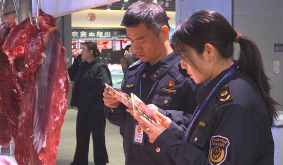 在主城区大型超市,执法人员聚焦春节消费热门品类,选取不同品牌预包装食品,仔细查看生产日期、有效期、执行标准、配料表等信息,严防“三无”食品、过期食品流入市场;同时,依托农产品质量安全可追溯系统,扫码查验牛肉、猪肉等畜禽肉承诺达标合格证、检疫检验证等情况。检查过程中,执法人员现场督促超市经营者严格落实食品安全主体责任,严把进货查验关,定期自查并及时清理临期、不合格食品,切实从源头防范食品安全风险。