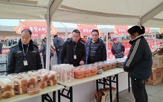 2月4日,辰溪县“福地辰溪 全民嗨购”年货节在刘晓公园热闹启幕,琳琅满目的年货吸引市民纷纷前来采购。为保障节日消费市场平稳有序,辰溪县市场监管局主动靠前服务,深入年货节现场开展专项检查与规范指导。