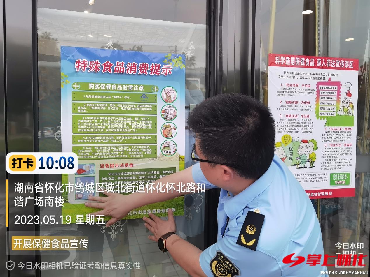 怀化日报全媒体讯 5月19日,怀化市市场监督管理局食品流通安全监管人员走进城北街道社区开展保健食品科普宣传活动,督促保健食品生产经营者落实主体责任,提高居民群众科学辨识能力和自我防范意识,营造保健食品放心消费环境。