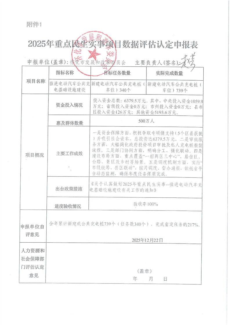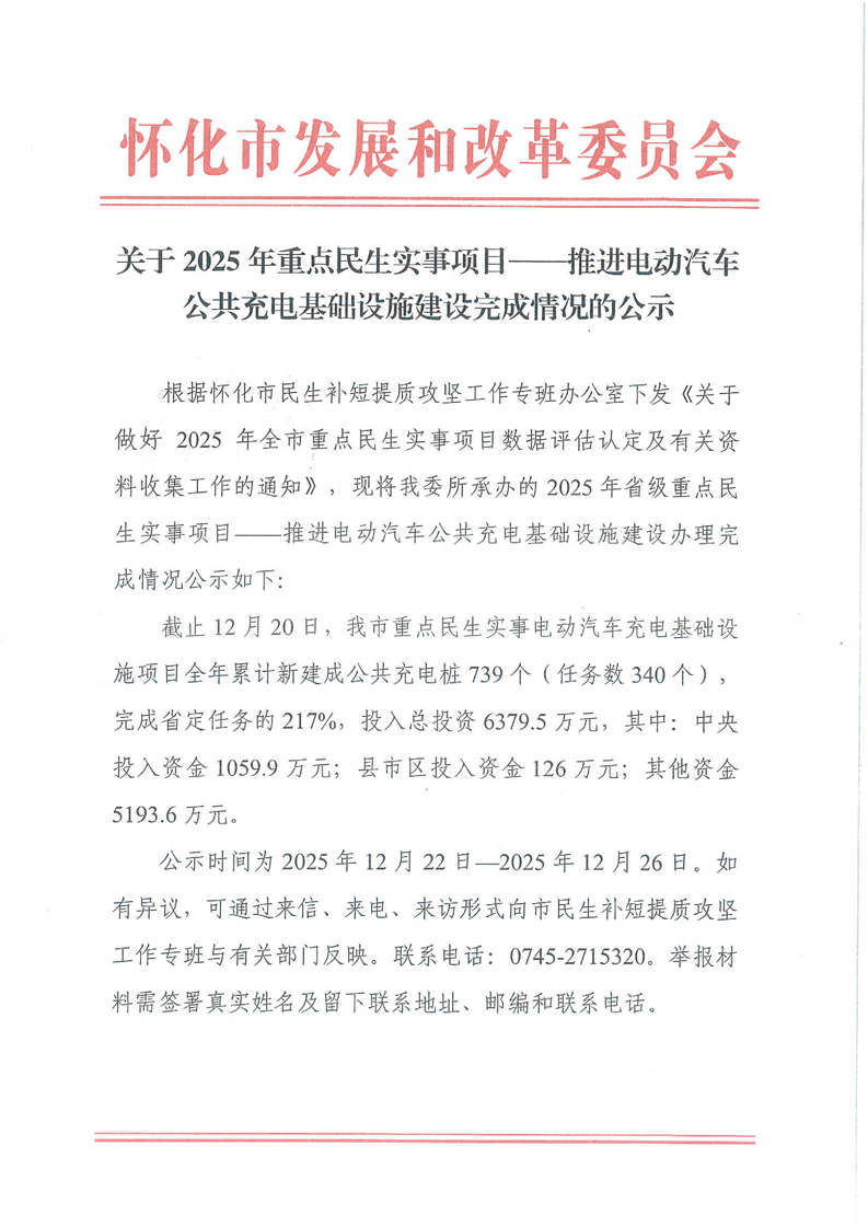 关于2025年重点民生实事项目——推进电动汽车公共充电基础设施建设完成情况的公示