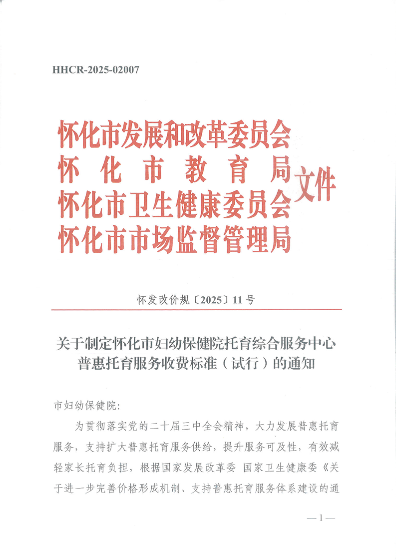 关于制定怀化市妇幼保健院托育综合服务中心普惠托育服务收费标准(试行)的通知