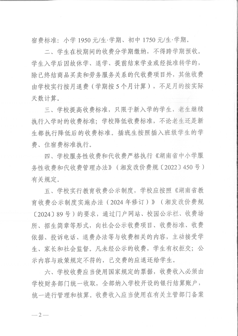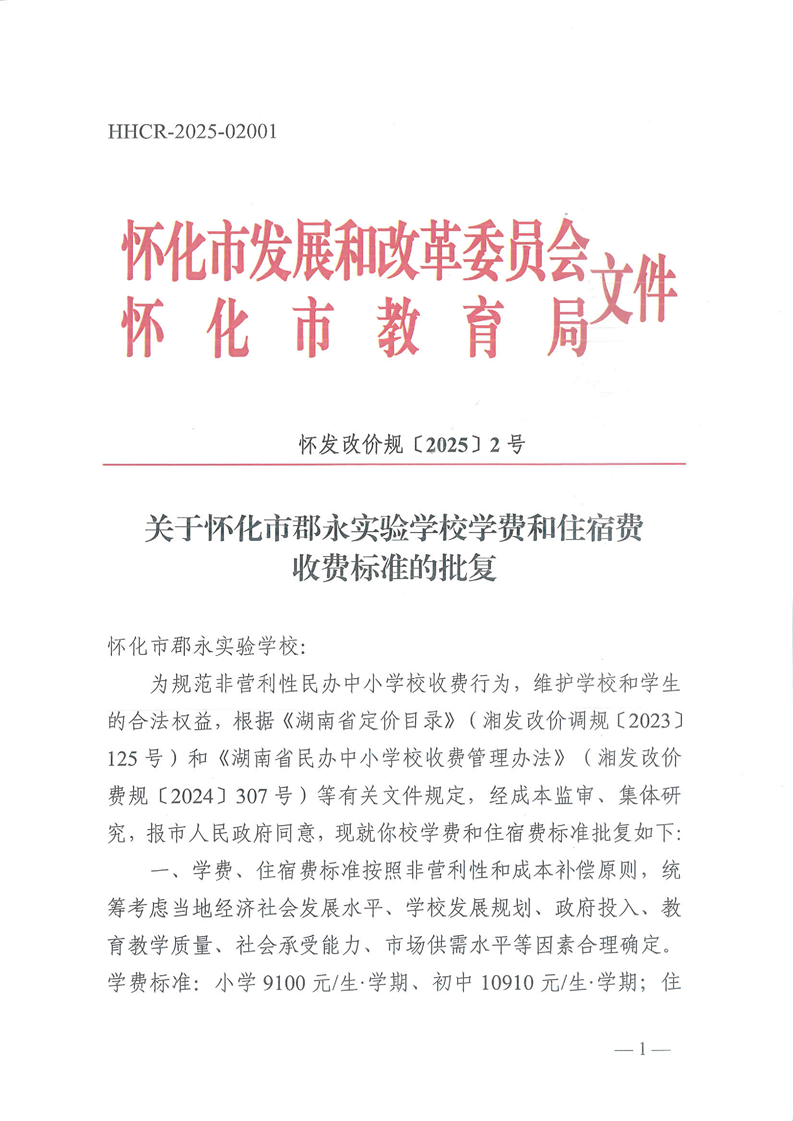 关于怀化市郡永实验学校学费和住宿费收费标准的批复