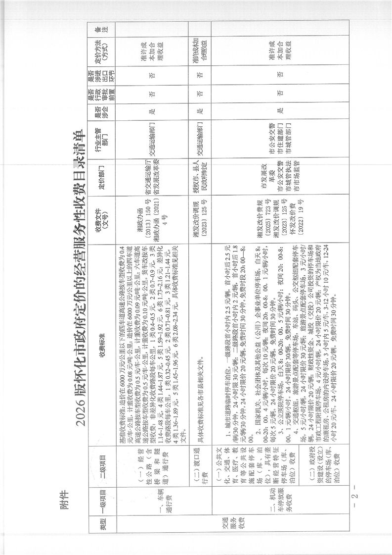 关于公布2026版怀化市政府定价的经营服务性收费目录清单的公告