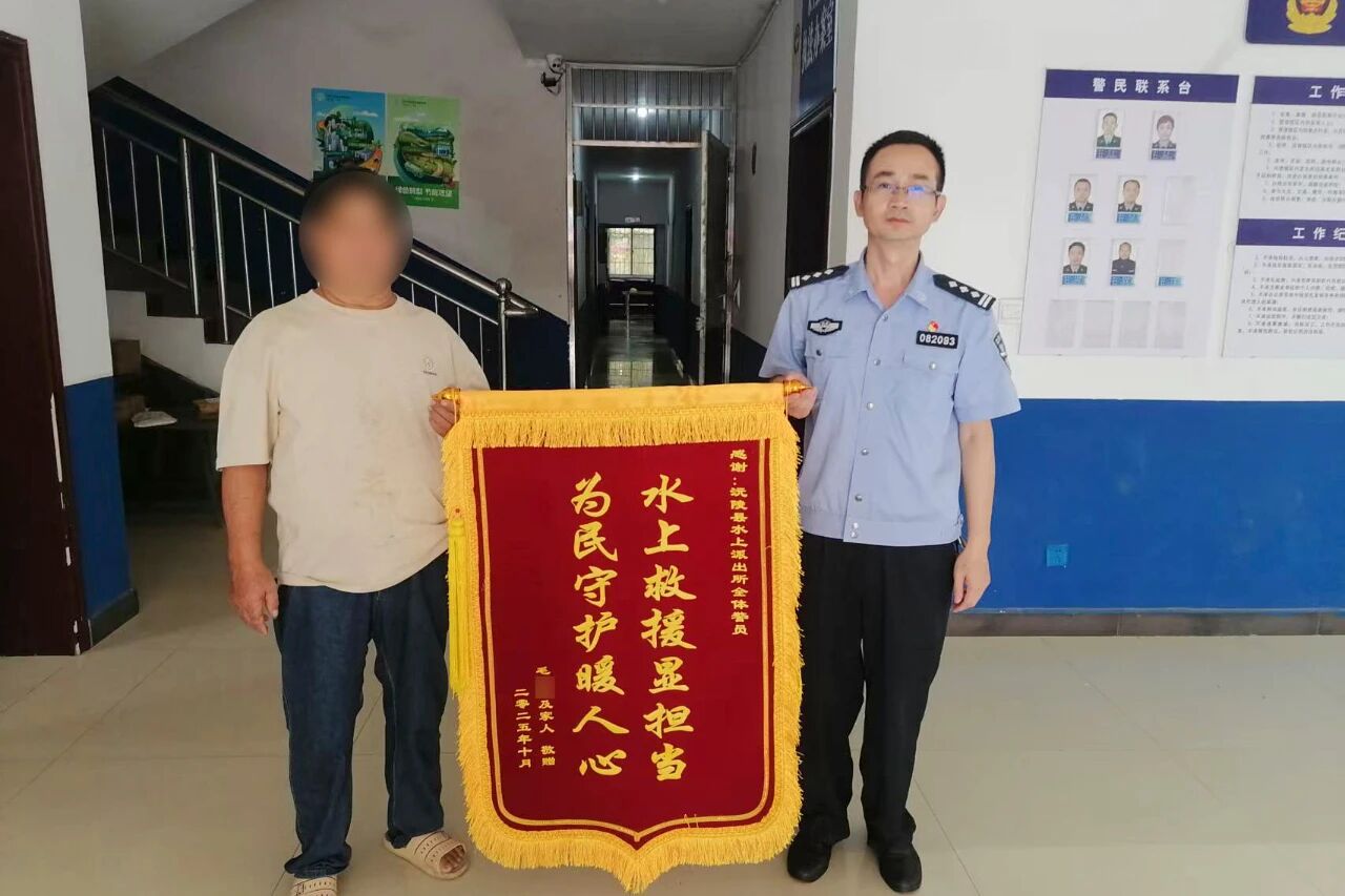 ▲沅陵公安成功救助一名落水女子获锦旗赞誉。