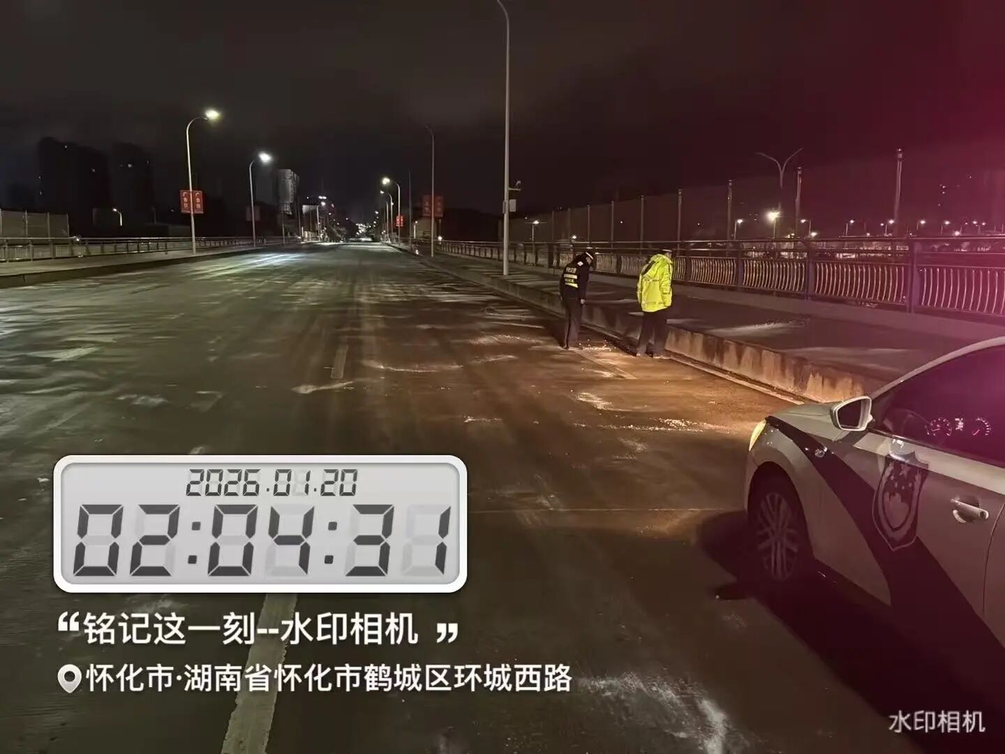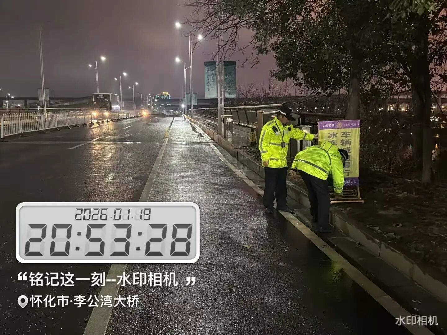 为有效应对冻雨恶劣天气对交通安全的影响,保障辖区道路安全、有序、畅通,最大限度预防和减少交通事故,怀化各级公安交管部门迅速启动恶劣天气应急预案,全力投入保安全、保畅通工作。1月19日晚,国际陆港大队组织警力深入辖区易结冰、易拥堵路段,实地巡查路况,持续加强动态管控,并在重点隐患路段采取设置警示标志、安排专人值守等措施,彻夜开展巡逻防控。同时,民警辅警不断提醒过往车辆驾驶人谨慎驾驶、减速慢行,保持安全车距,确保行车安全。鹤城大队、机动大队也在各自辖区同步开展巡逻管控,共同筑牢道路交通安全防线。
