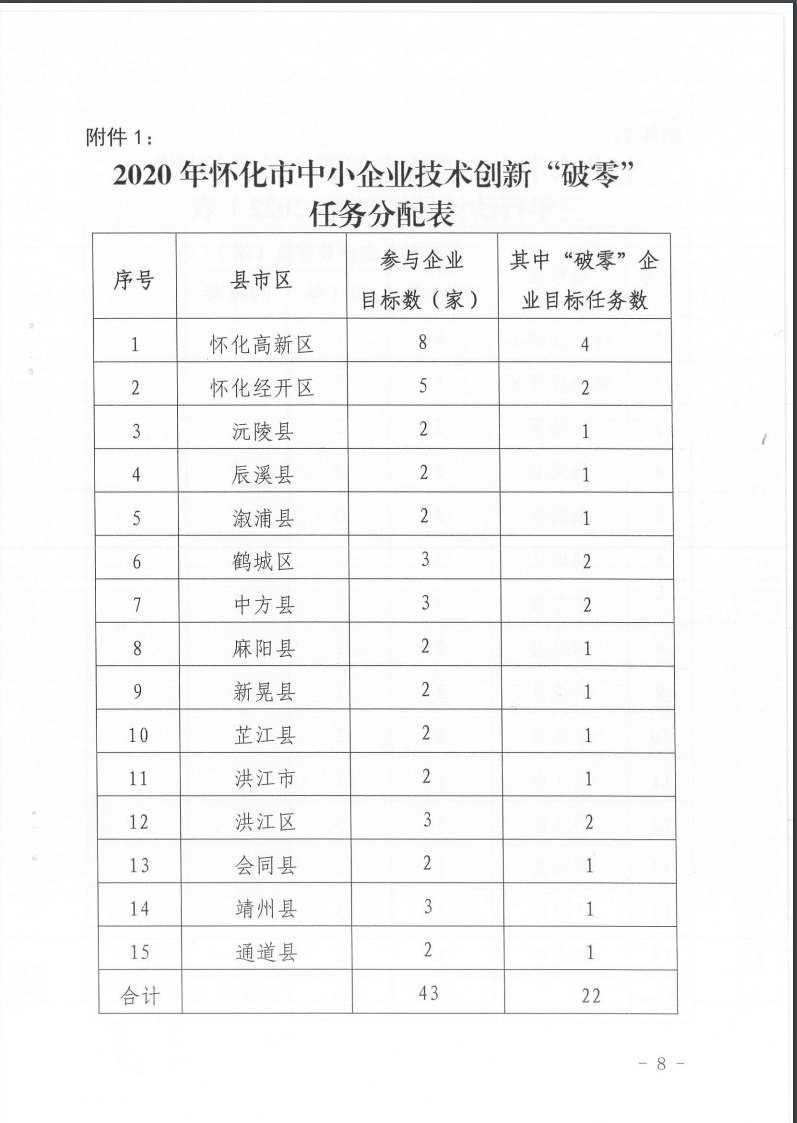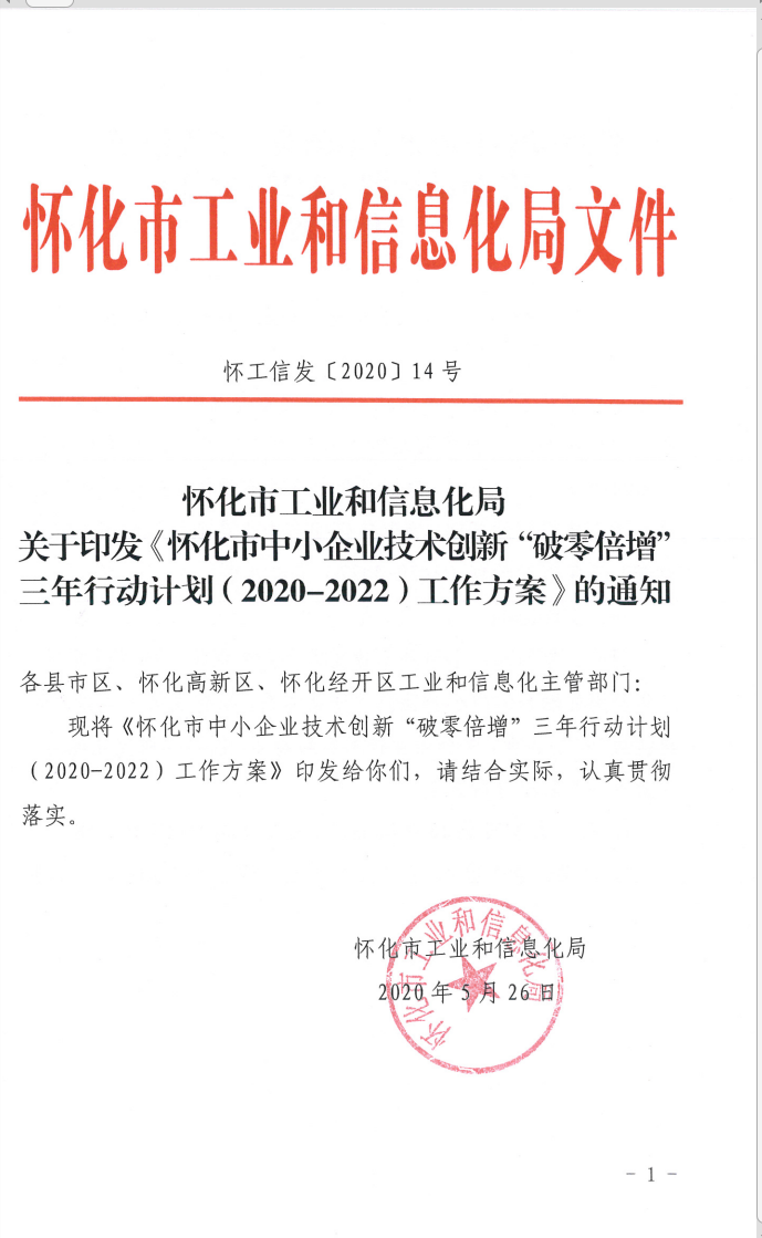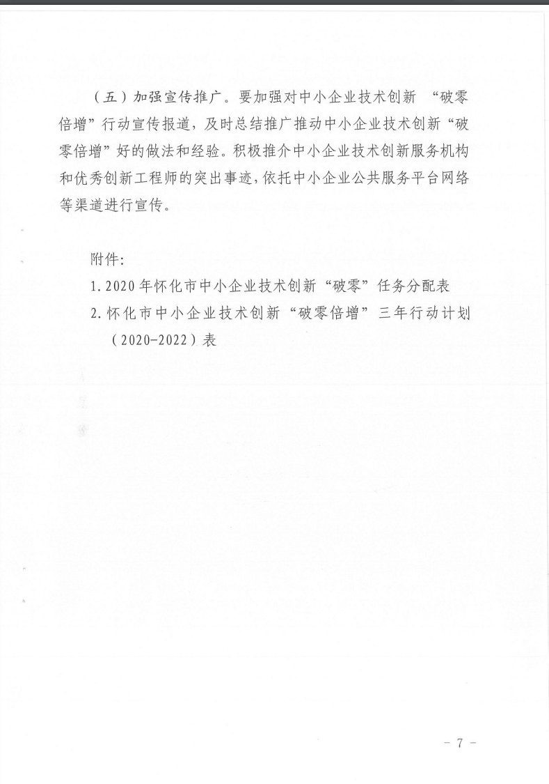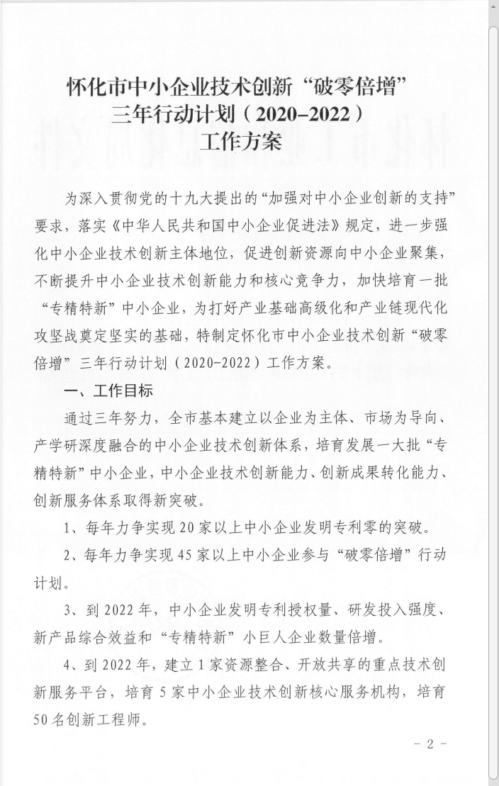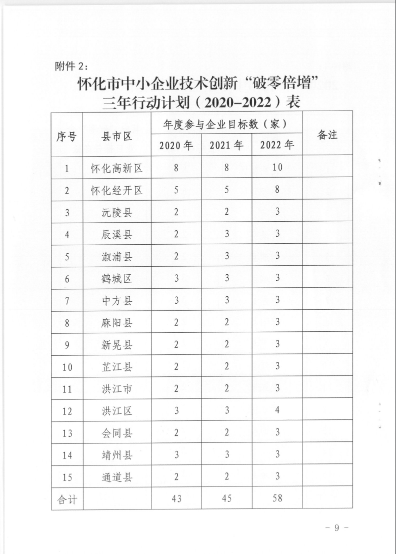 关于印发《怀化市中小企业技术创新》“破零倍增”三年行动计划(2020-2022)工作方案》的通知
