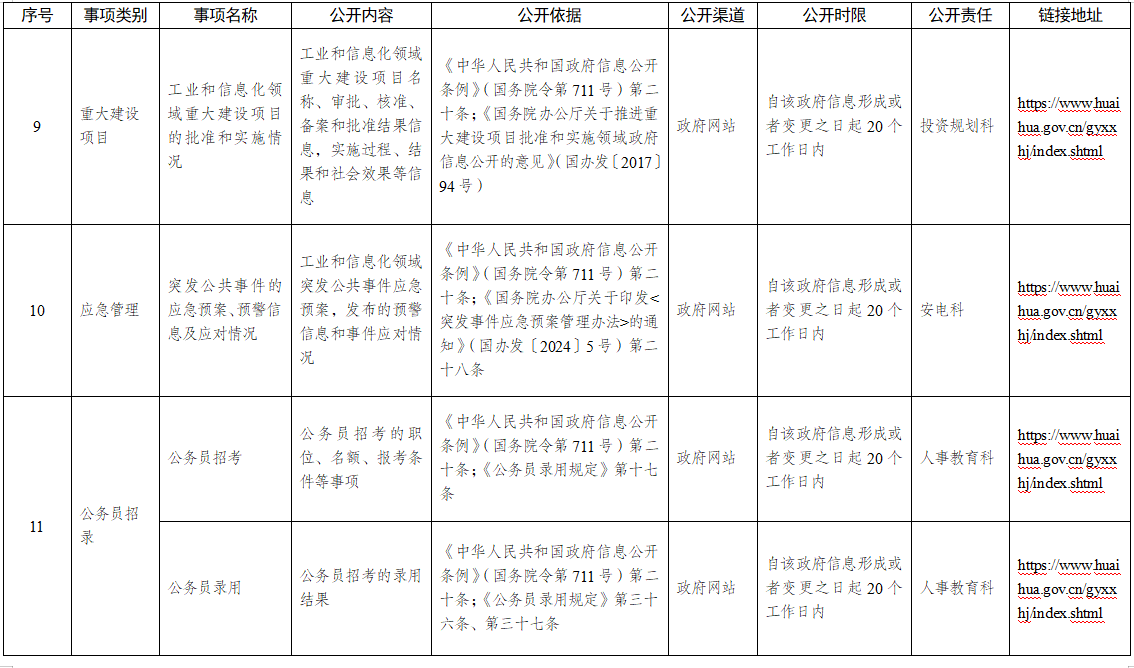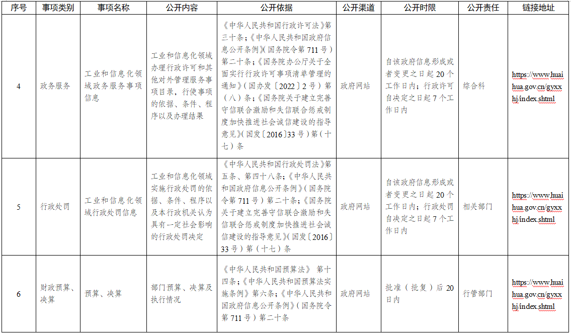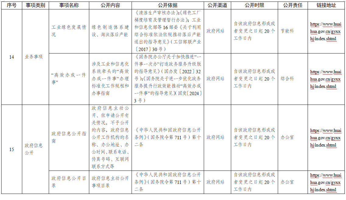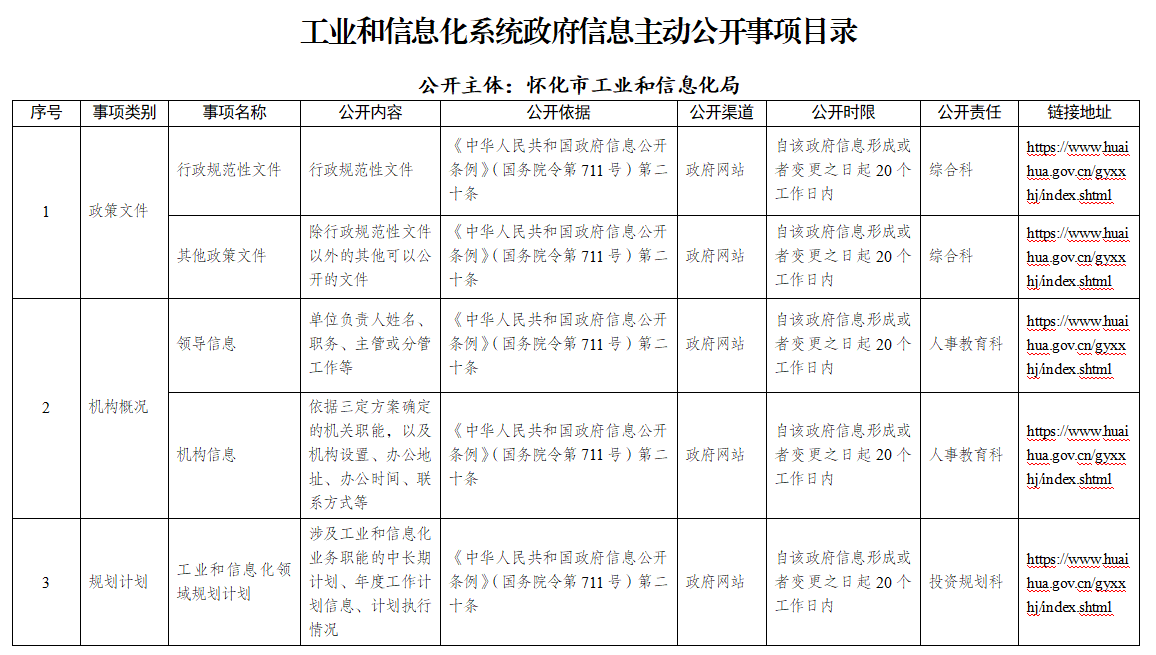 工业和信息化系统政府信息主动公开事项目录