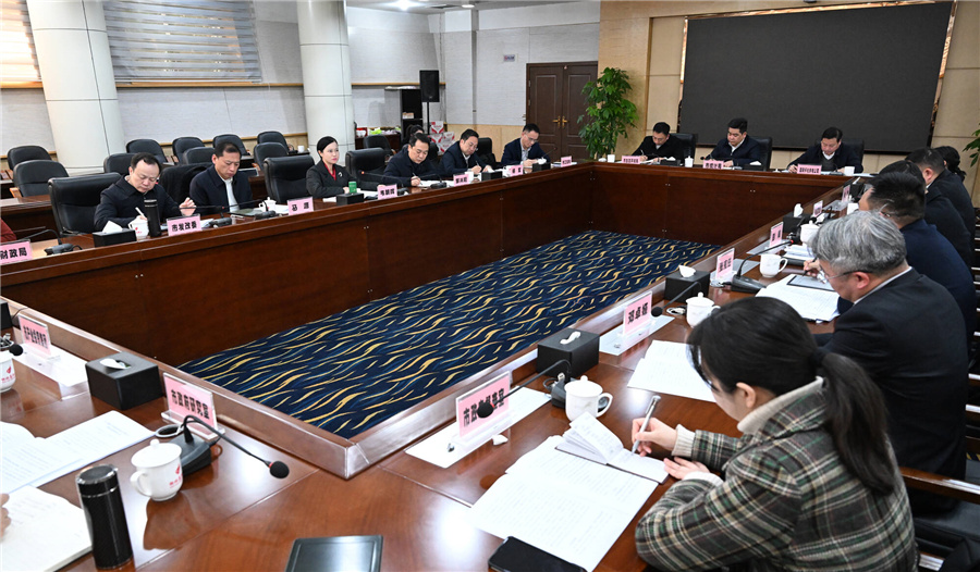 1月7日上午,市委副书记、市长韦朝晖在怀化高新区调研产业发展。图为韦朝晖主持召开座谈会。(怀化日报全媒体记者 吴涛 摄)