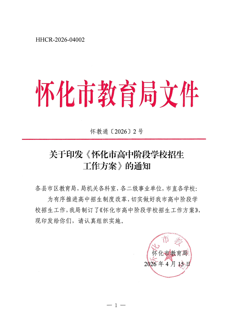 文号:怀教通〔2026〕2号