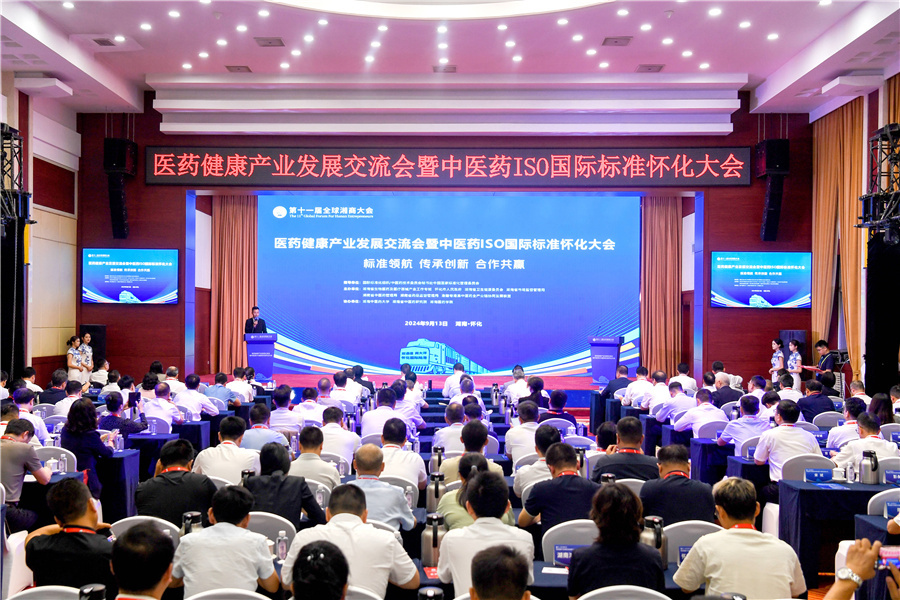 (9月13日下午,第十一届全球湘商大会医药健康产业发展交流会暨中医药ISO国际标准怀化大会召开。)