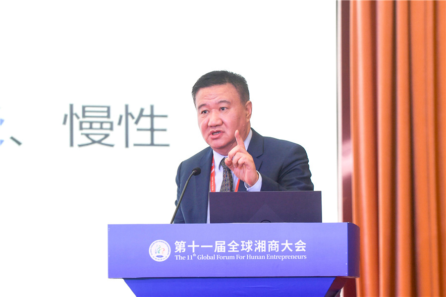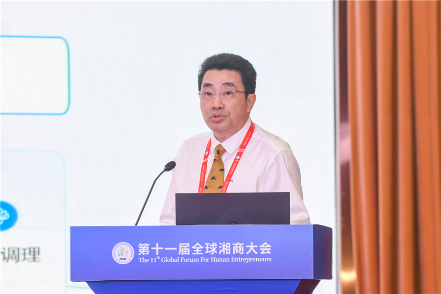 (北京同仁堂股份有限公司总经理张朝华作主旨演讲 以上照片均由怀化日报全媒体记者 杨智伟 摄)
