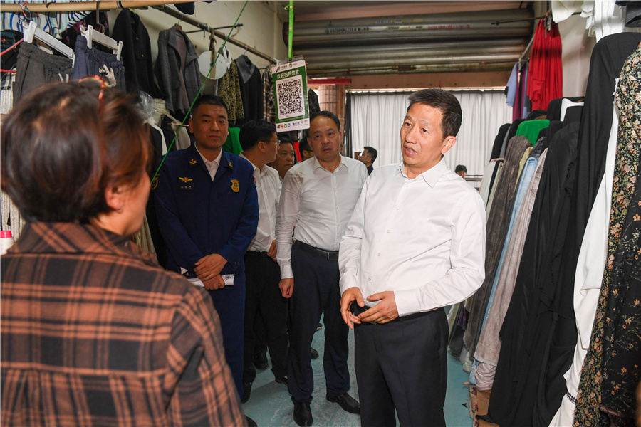 (4月15日下午,市委书记许忠建以“四不两直”方式在怀化城区、中方县督导检查安全生产工作。图为许忠建在怀化纺织品市场与经营户面对面交流,了解安全生产整改情况。怀化日报全媒体记者 杨智伟 摄)