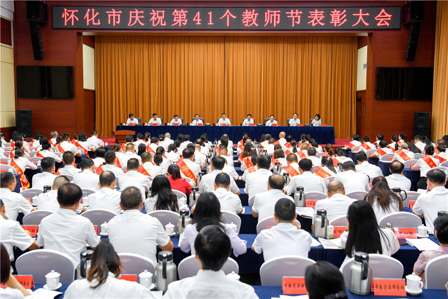 (9月9日上午,市委、市政府召开庆祝第41个教师节表彰大会。)