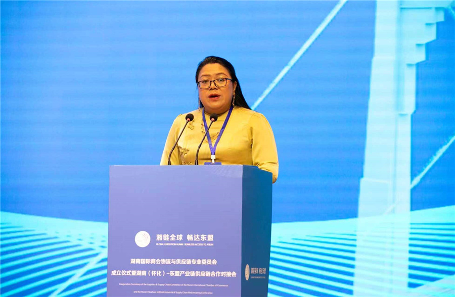 凯素林在致辞中说,怀化是东盟产品进入中国中部市场的重要物流枢纽,东盟与怀化在提升物流与供应链合作方面潜力巨大。怀化国际陆港是连接怀化与缅甸皎漂港、仰光港的跨境快运通道的组成部分,为缅甸与怀化进行更多贸易往来提供了机会。本次对接会将为区域经贸合作与产业链供应链融合注入新动力,搭建企业沟通协作平台,共同开创互利共赢的美好未来。欢迎更多中国投资者赴缅甸探索商机,享受投资优惠政策,在农产品加工、绿色能源等方面寻求合作。