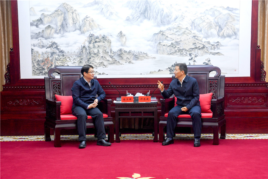 12月23日下午,市委书记许忠建会见中建三局有限公司党委书记、董事长陈卫国一行。