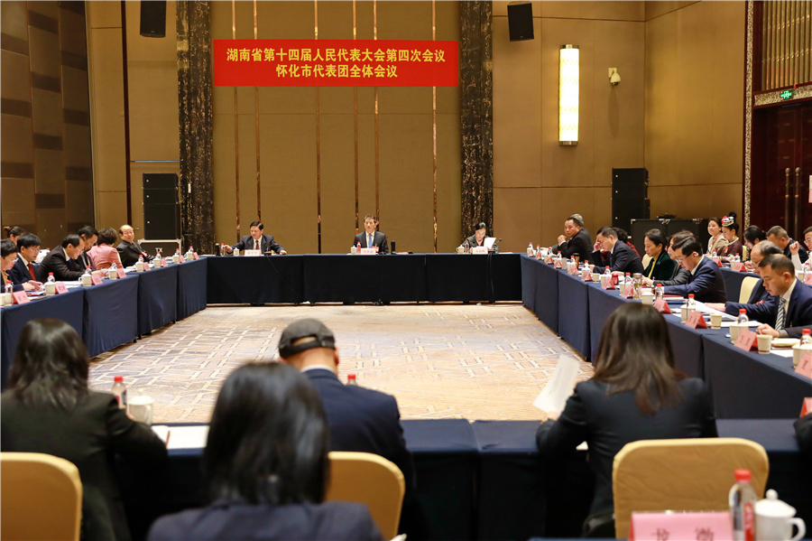 (2月6日上午,出席省十四届人大四次会议的怀化市代表团在驻地举行第七次全体会议,审议省高级人民法院、省人民检察院工作报告。怀化日报全媒体记者 彭军 摄)