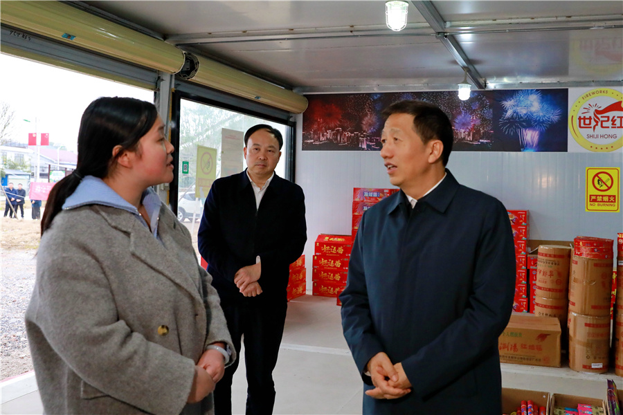 来到炫通烟花鞭炮店,许忠建现场察看烟花爆竹存放、消防器材配备等情况。他强调,要切实加强烟花爆竹安全风险防控,严格落实“五个严禁、三个务必”八项硬措施,全面深入排查整治各类风险隐患,切实强化烟花爆竹生产、运输、销售、燃放各环节安全监管,坚决防范事故发生。