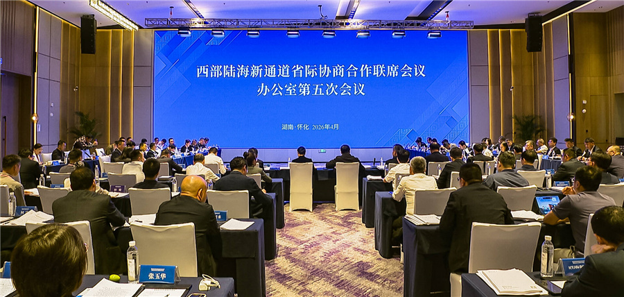(4月9日上午,西部陆海新通道省际协商合作联席会议办公室第五次会议在怀化召开。)