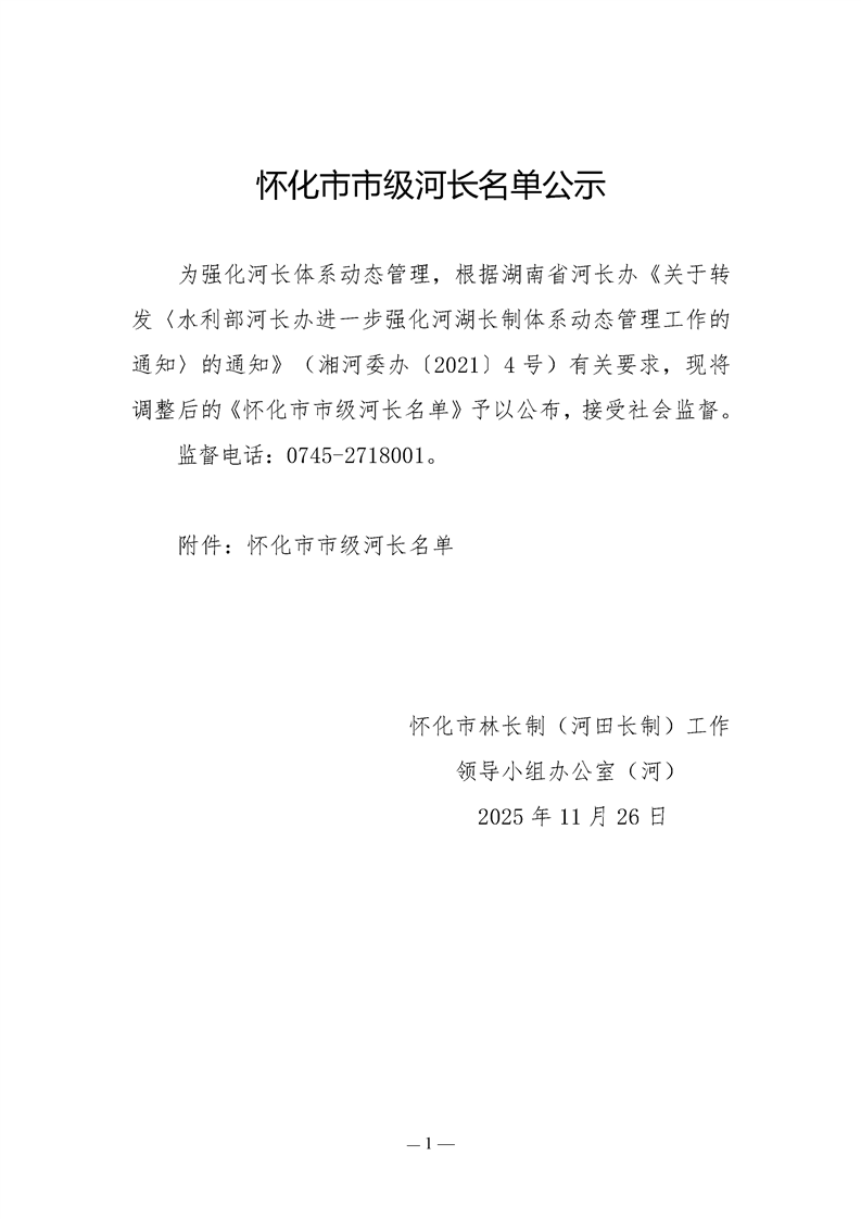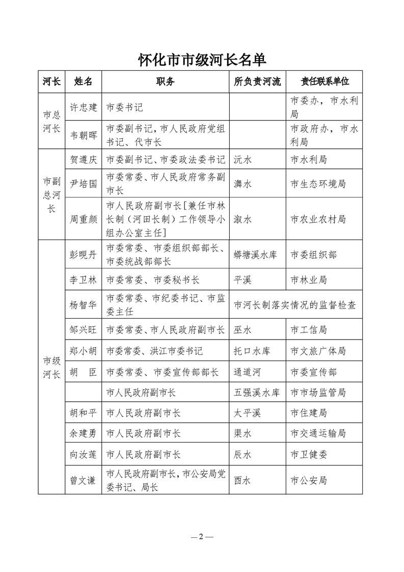 怀化市市级河长名单公示