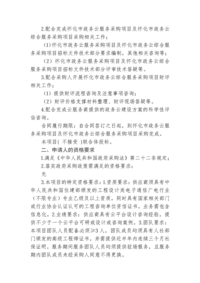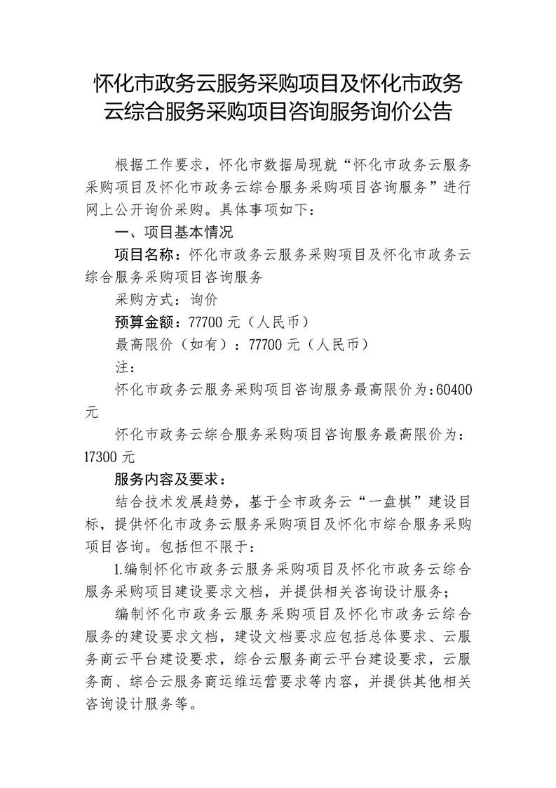 怀化市政务云服务采购项目及怀化市政务云综合服务采购项目咨询服务询价公告