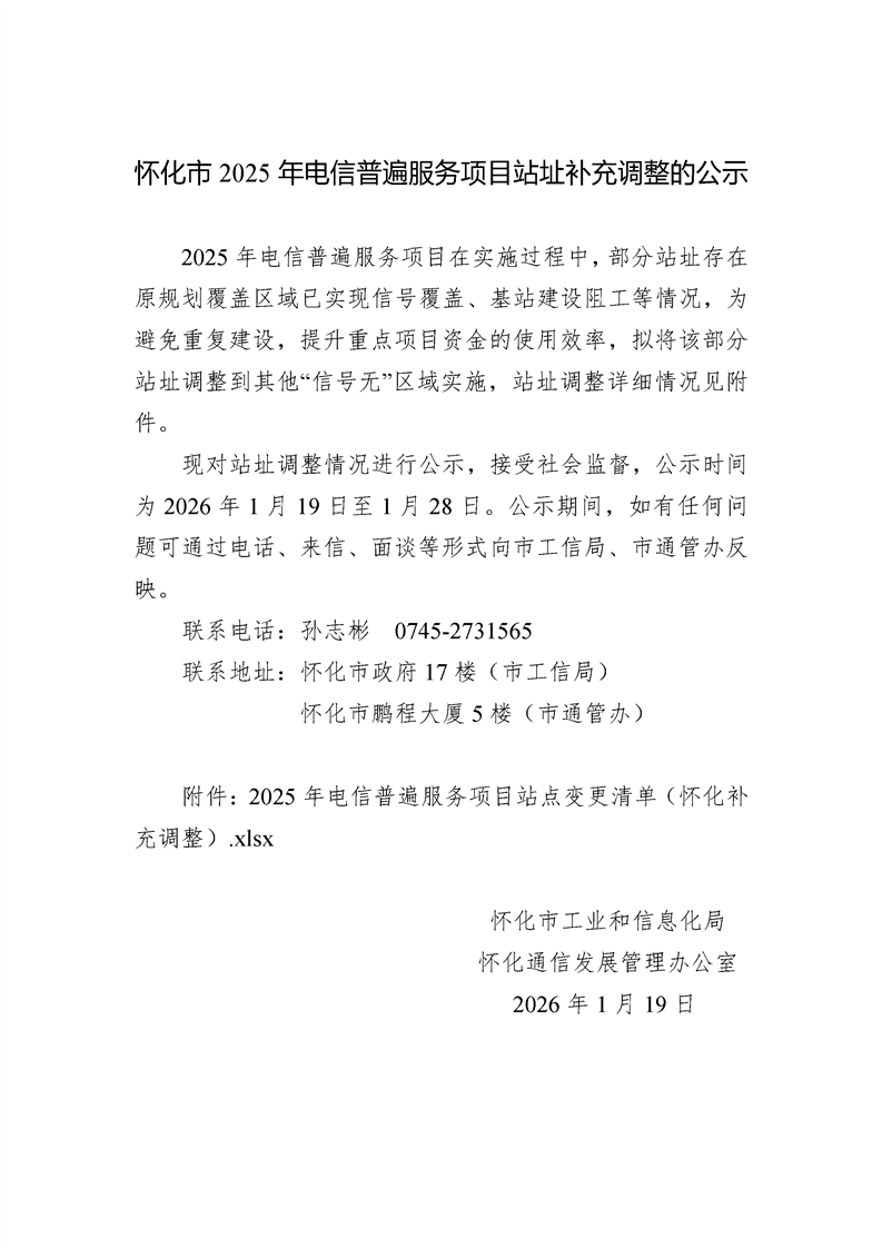 怀化市2025年电信普遍服务项目站址补充调整的公示