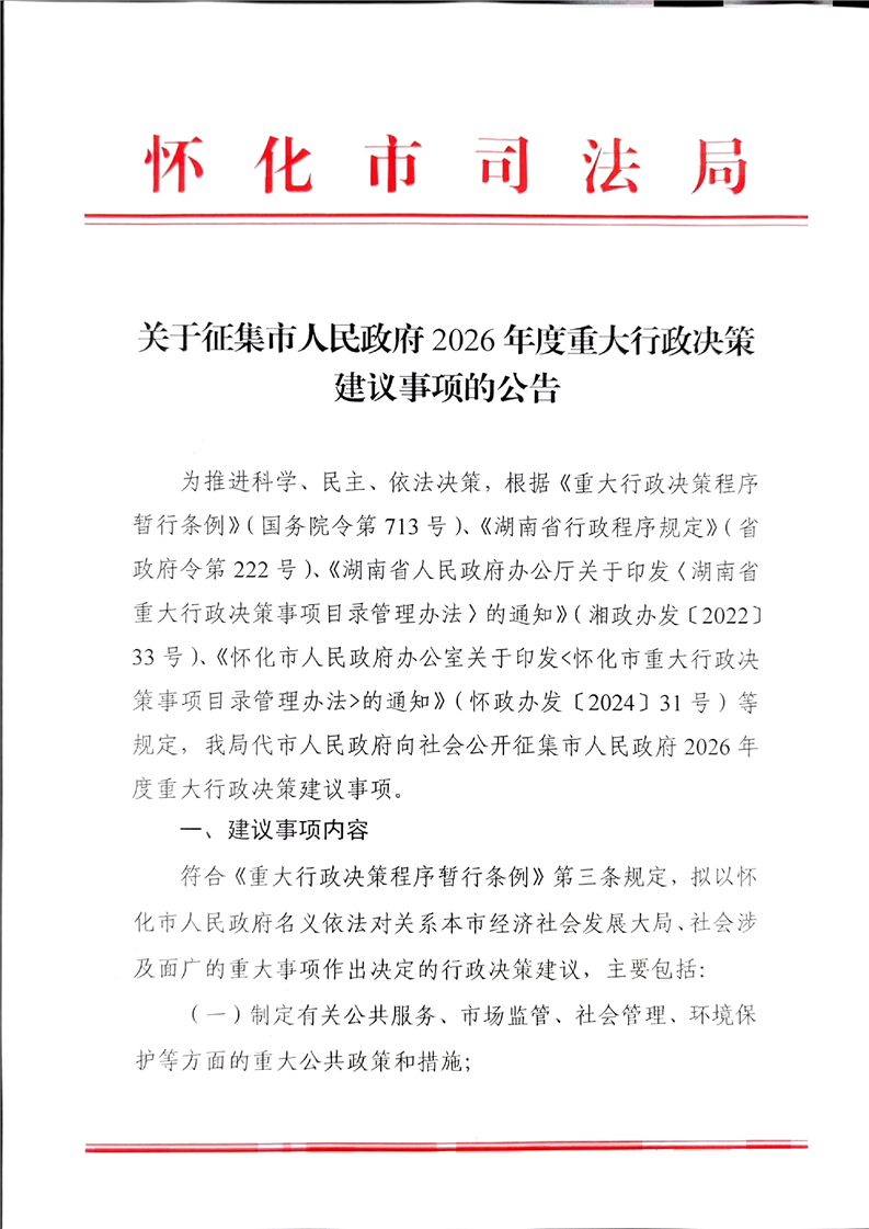 关于征集市人民政府2026年度重大行政决策建议事项的公告