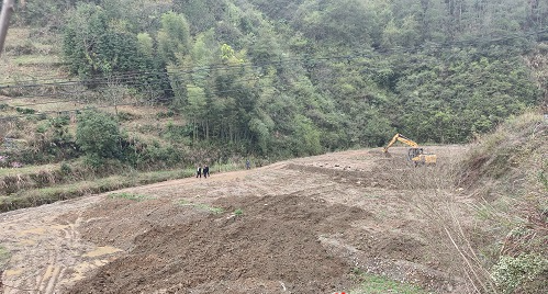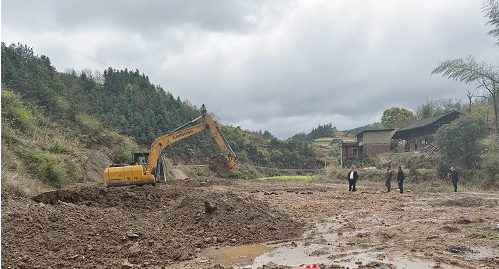 3月22日,雨后的祖师殿镇水田庄村山清水秀、花香四溢,希望的田野上生机涌动。在该村一个名叫旋塘湾的山坳里,挖土机正来回穿梭,将堆放的淤泥均匀地填放在地块上。