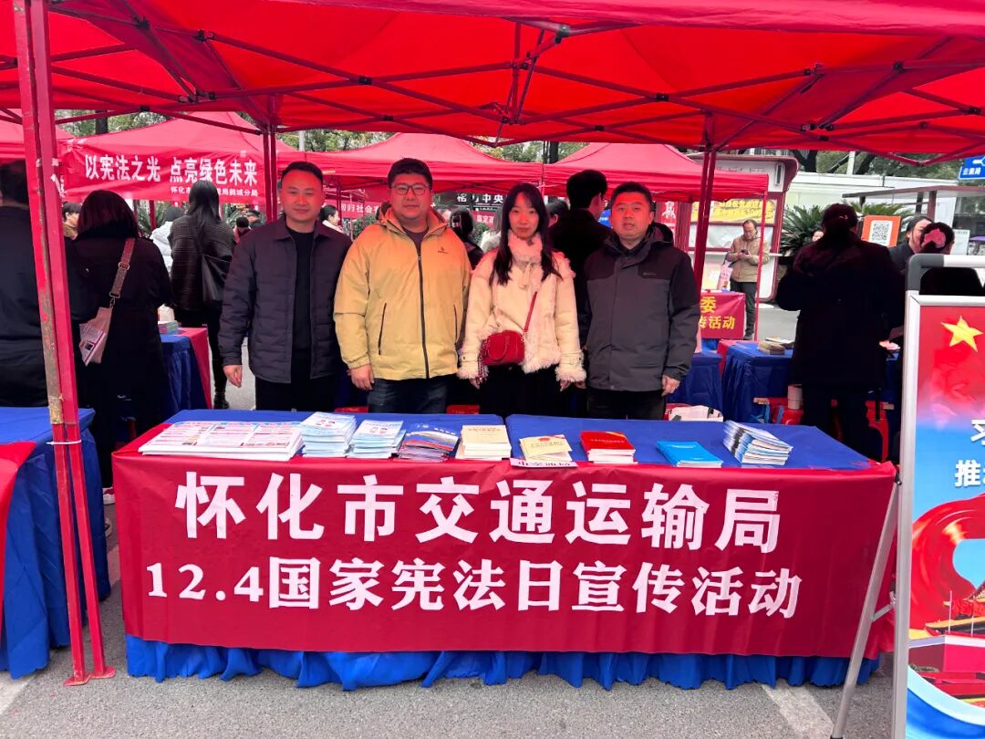 12月4日,怀化市交通运输局在市委佳惠广场,组织开展2025年“宪法宣传周”集中宣传活动,积极引导社会公众遵法学法守法用法,着力营造浓厚法治氛围。