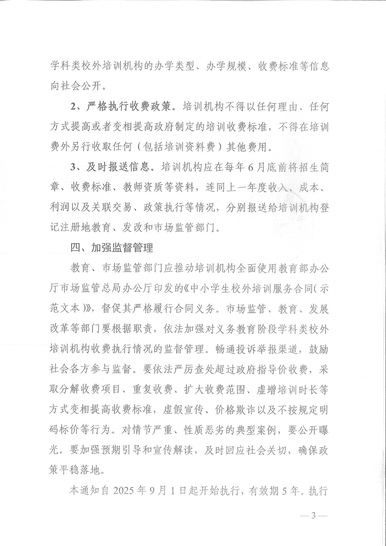 关于怀化市义务教育阶段学科类校外培训收费有关问题的通知