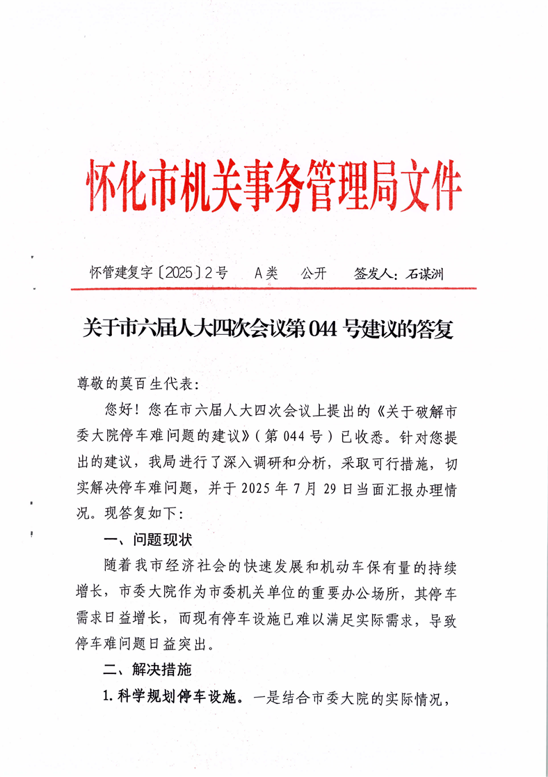 关于市六届人大四次会议第044号建议的答复