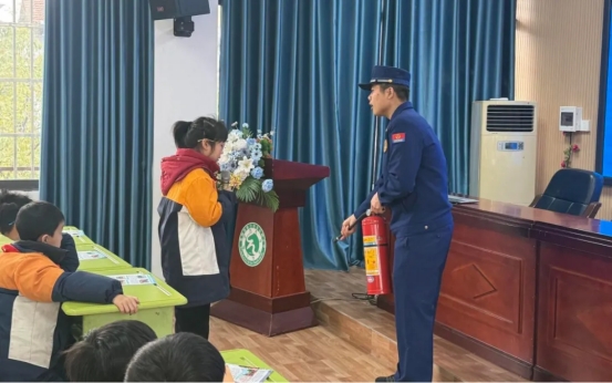 3月5日上午,麻阳苗族自治县消防救援大队走进长河小学,为师生开展消防安全“开学第一课”。活动中,宣讲员通过互动问答、情景模拟,讲解校园防火、火场逃生、正确报警等知识,并现场演示干粉灭火器“提、拔、握、压”使用方法,邀请学生上台实操体验,孩子们踊跃参与,现场气氛热烈。
