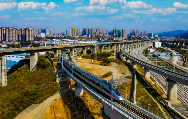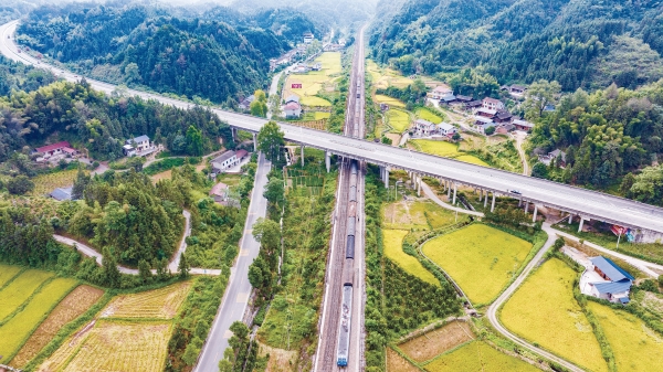 《高铁高速助力区域经济发展迈上快车道》摄于张吉怀高铁、渝怀铁路与包茂高速交汇的怀化鹤城区境内。