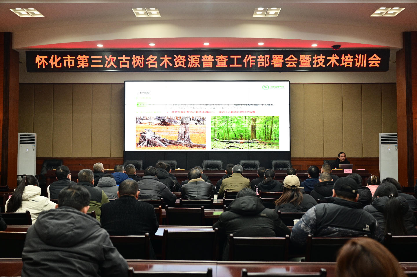 2026年1月23日,怀化市林业局召开第三次古树名木资源普查工作部署会暨技术培训会。会议传达了国家绿委办、湖南省林业局对古树名木普查工作要求,全面部署了我市第三次古树名木资源普查工作,并对相关技术人员进行了普查业务培训。怀化市林业局、怀化市城管局、各县市区林业局及自然保护地等相关单位负责人和业务骨干参加会议。
