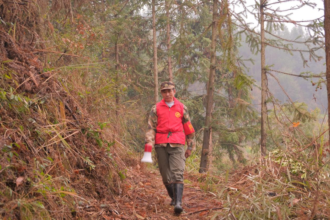 在通道县播阳镇晨光微熹中,护林员欧华安已带着巡护工具走进莽莽林海。他从事护林巡山工作5年,在青山绿水间谱写了动人篇章。