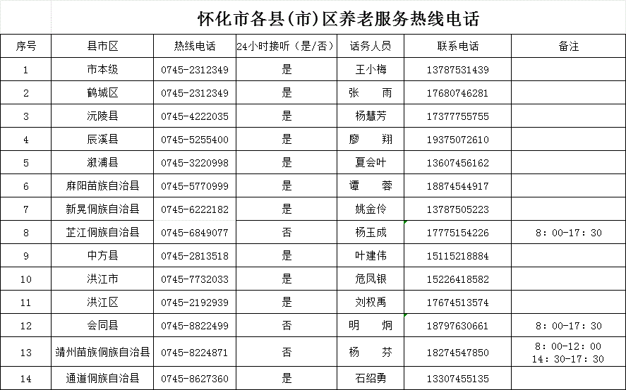 关于向社会公布怀化市养老服务热线和养老服务机构信息的公告