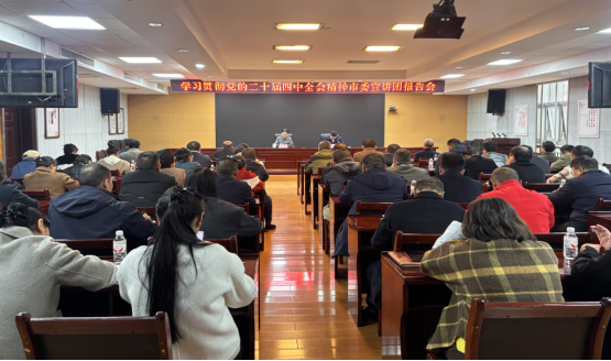 ▲12月19日上午,学习贯彻党的二十届四中全会精神市委宣讲团报告会在市民政局举行。