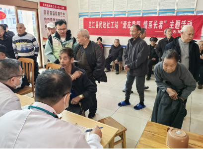 健康关爱零距离,文艺赋能添乐趣。县民政局联合医疗机构在县福利院开展了“爱在重阳、情系长者”义诊活动,为院内老人提供血压血糖检测、心肺功能检查、慢性病咨询等多项服务,医护人员结合检查结果给出个性化健康指导。
