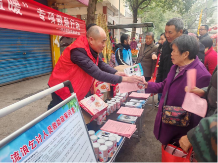 活动中,工作人员向赶集群众发放救助政策宣传资料及御寒物资,详细讲解救助政策,普及救助热线和求助渠道,号召环卫工人、商铺经营者等群体成为“民生探头”,积极构建 “群众发现—线索上报—快速响应”的高效社会联动救助网络,让更多人知晓救助、参与救助。