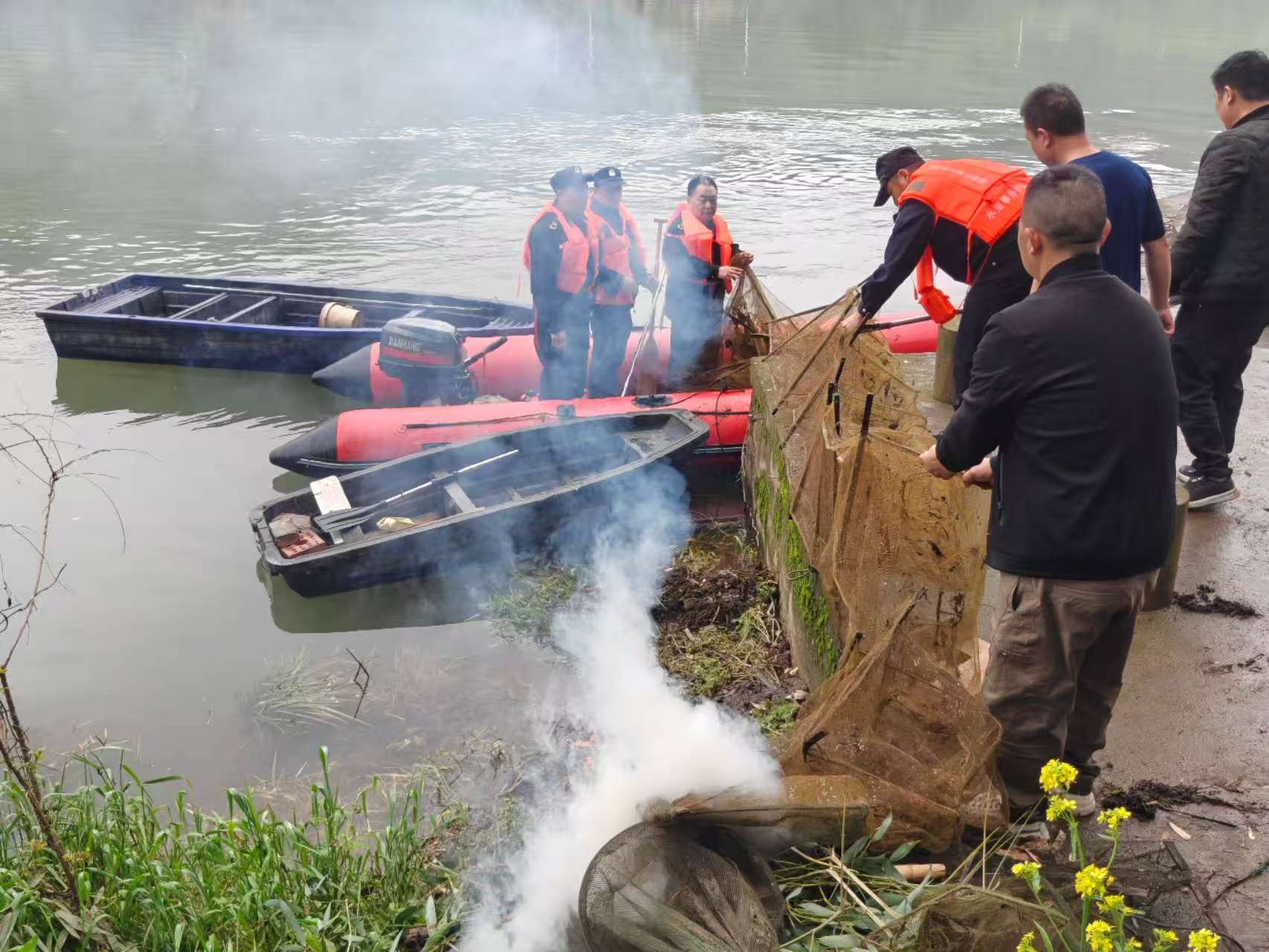 为深入贯彻长江十年禁渔决策部署,严厉打击非法捕捞违法违规行为,切实筑牢县域水域生态保护屏障,有效保护锦江河等重点水域的渔业资源与生态环境,2026年4月8日,麻阳苗族自治县禁捕退捕工作领导小组办公室牵头,联合县农业农村局、县森林公安局、高村镇人民政府等多部门,组建专项执法行动组,在县域重点水域开展非法捕捞工具集中清理整治专项行动。