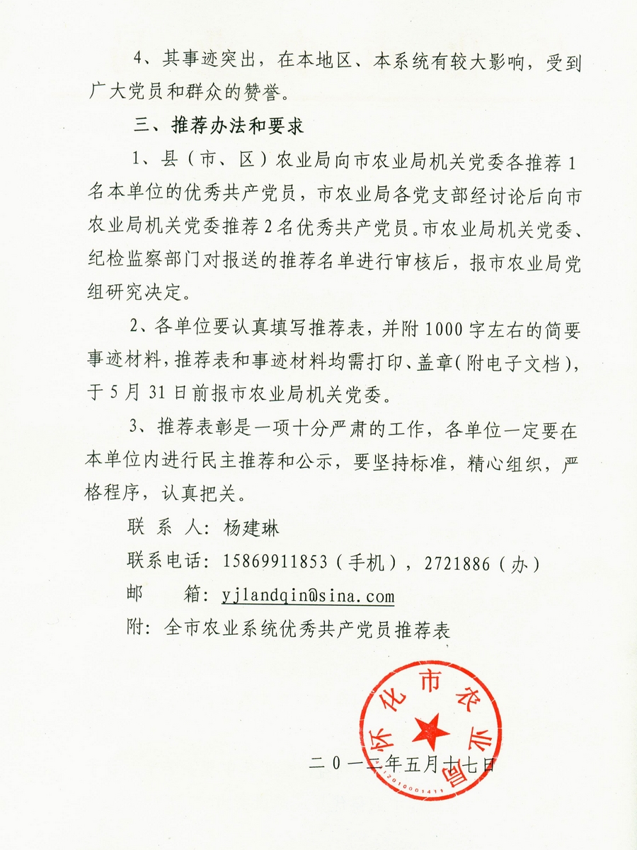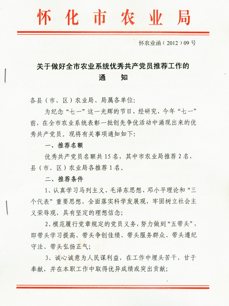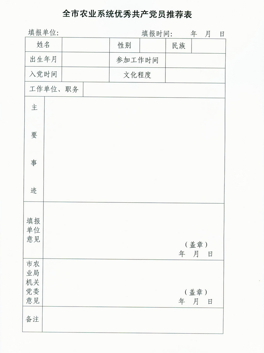 关于做好全市农业系统优秀共产党员推荐工作的通知