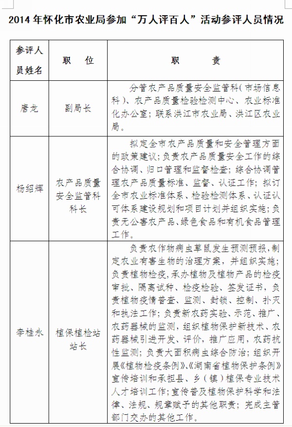 2014年怀化市农业局参加“万人评百人”活动参评人员情况