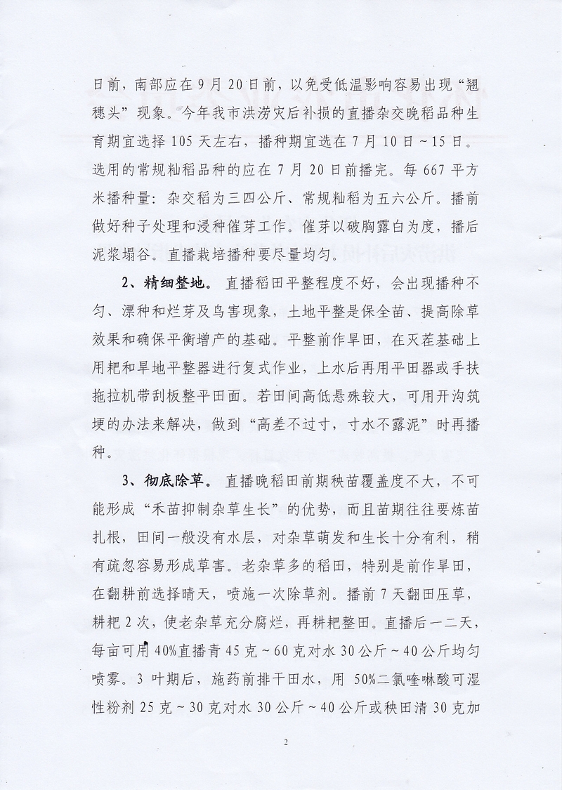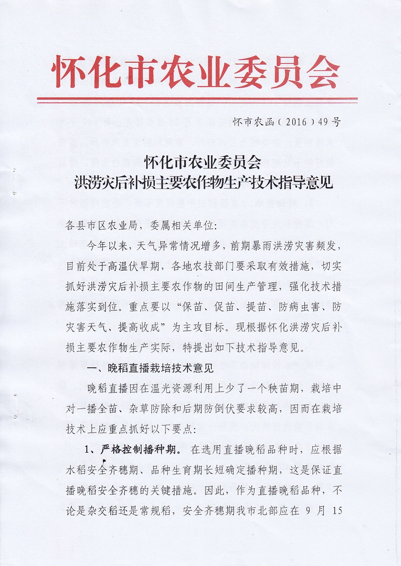 怀化市农业委员会洪涝灾后补损主要农作物生产技术指导意见
