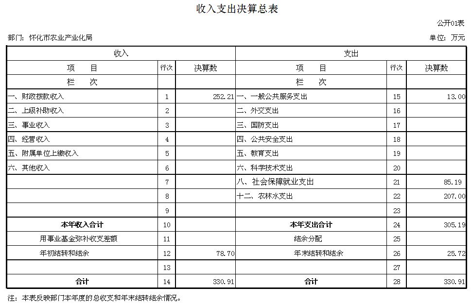 怀化市农业产业化局2015年收入支出决算总表