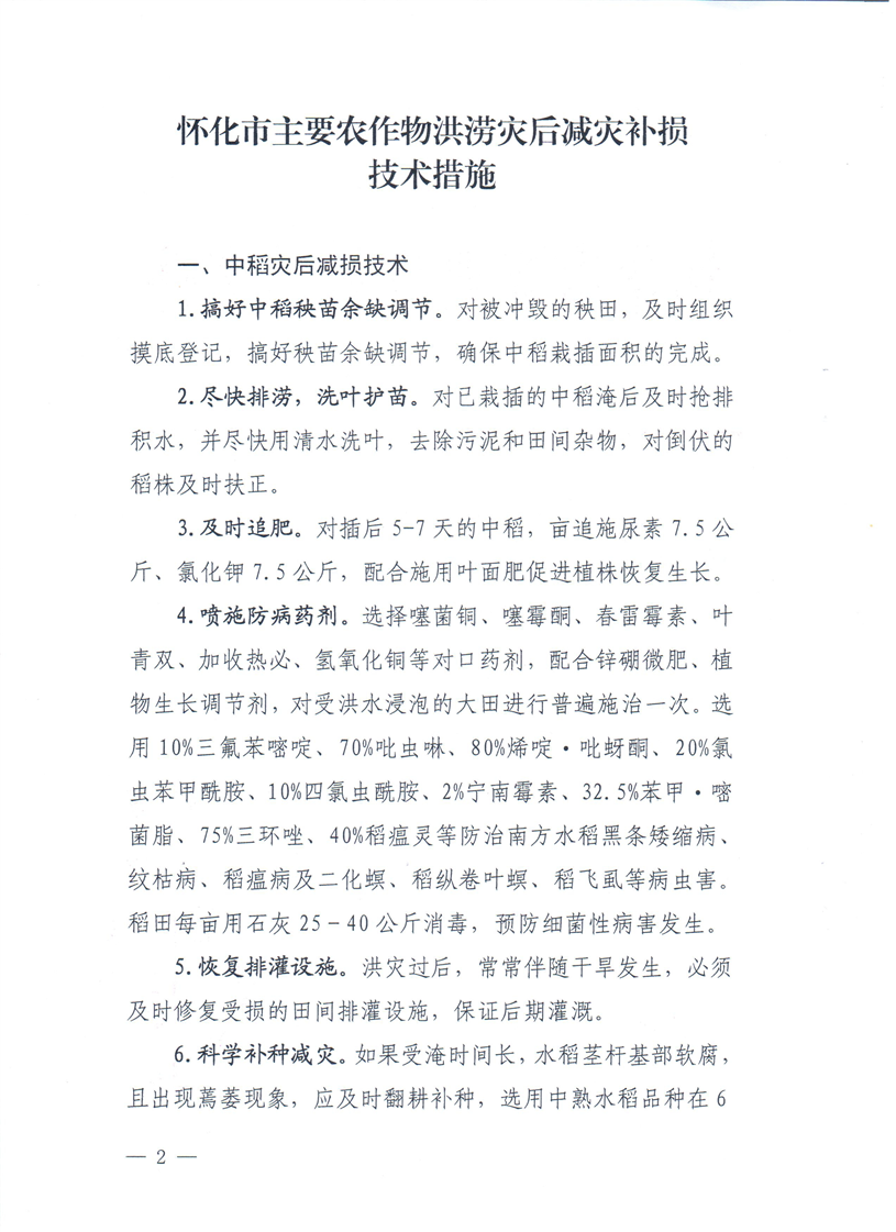 关于印发《怀化市主要农作物洪涝灾后减灾补损技术措施》的通知