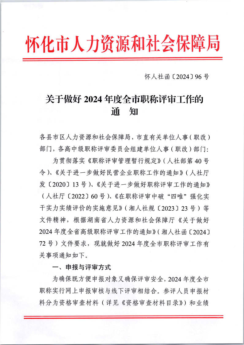 关于做好2024年度全市职称评审工作的通知