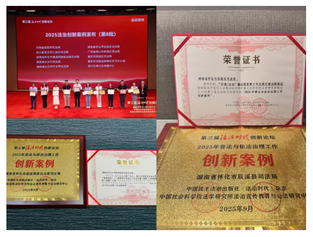 近日,由中国民主法制出版社联合中国社会科学院法学研究所主办的第三届法治时代创新论坛暨全民普法 40 周年研讨会、首届法治发展创新研讨会、首届法律服务业高质量发展研讨会公布 “2025年法治创新案例和创新论文” 等入选名单。怀化市司法局、所辖县市区司法局及怀化市强制隔离戒毒所凭借在法治实践中的创新探索与突出成效,多点发力、斩获佳绩,共荣获7项全国性法治创新荣誉,怀化市司法局、通道县龚静分别获优秀供稿单位、优秀通讯员称号。