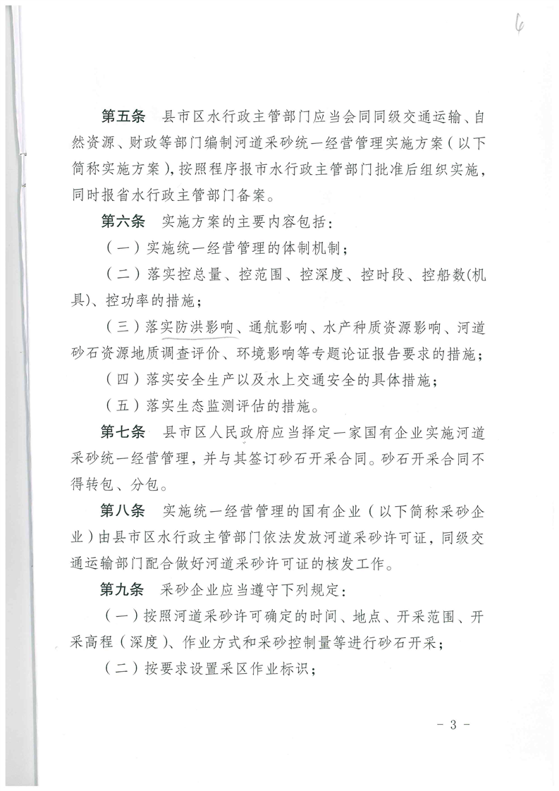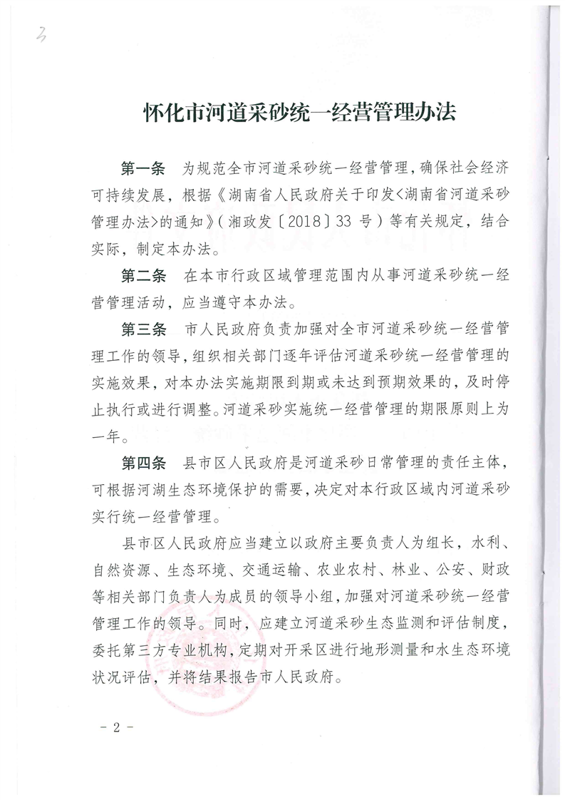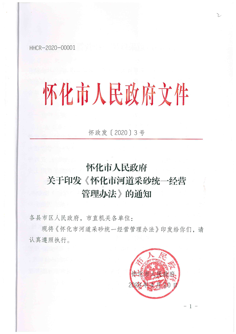 怀化市人民政府关于印发《怀化市河道采砂统一经营管理办法》的通知
