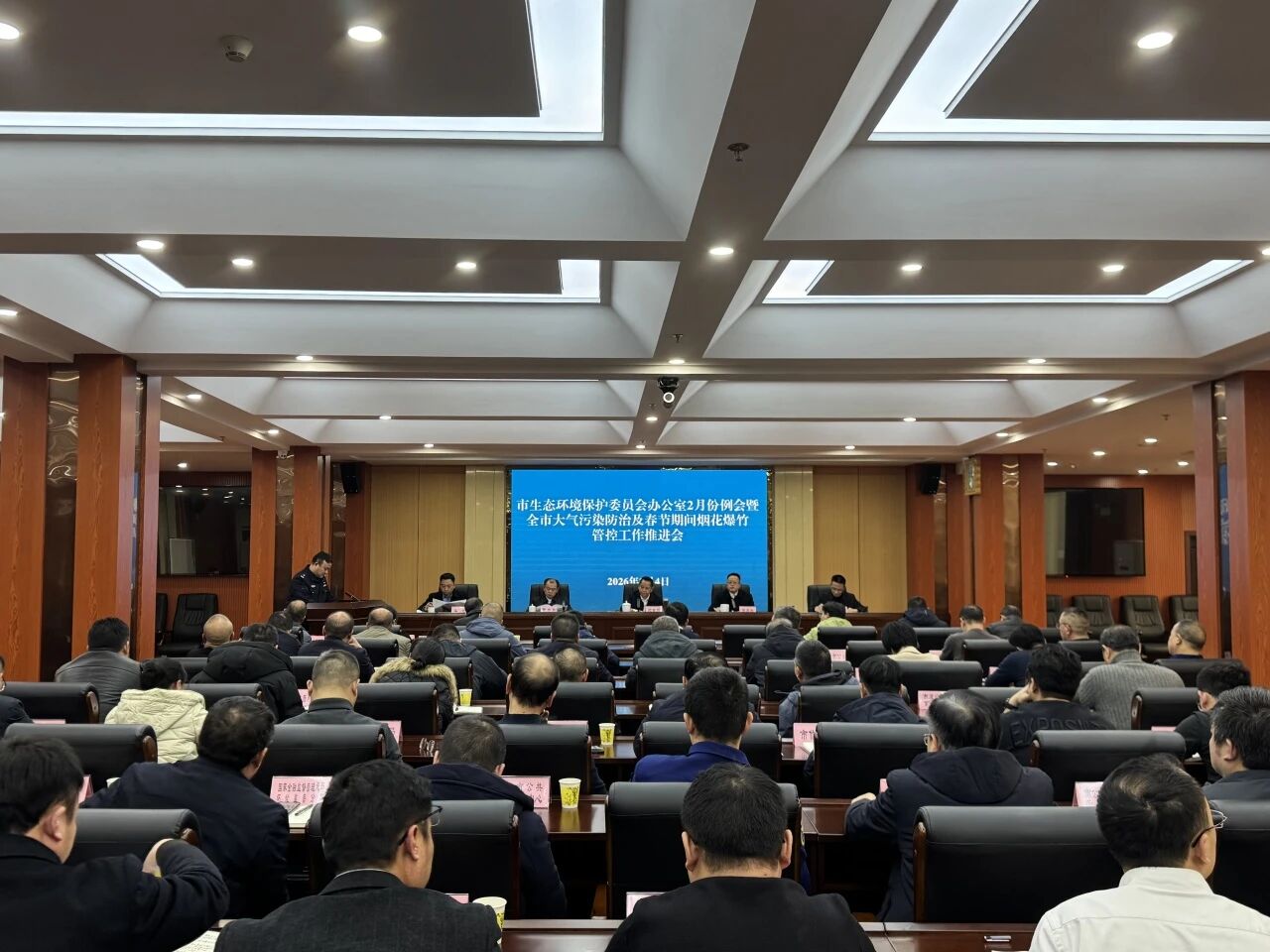2月4日下午,全市大气污染防治及春节期间烟花爆竹管控工作推进会召开。副市长周重颜出席并讲话。