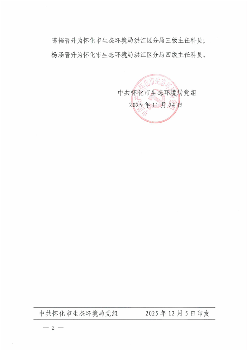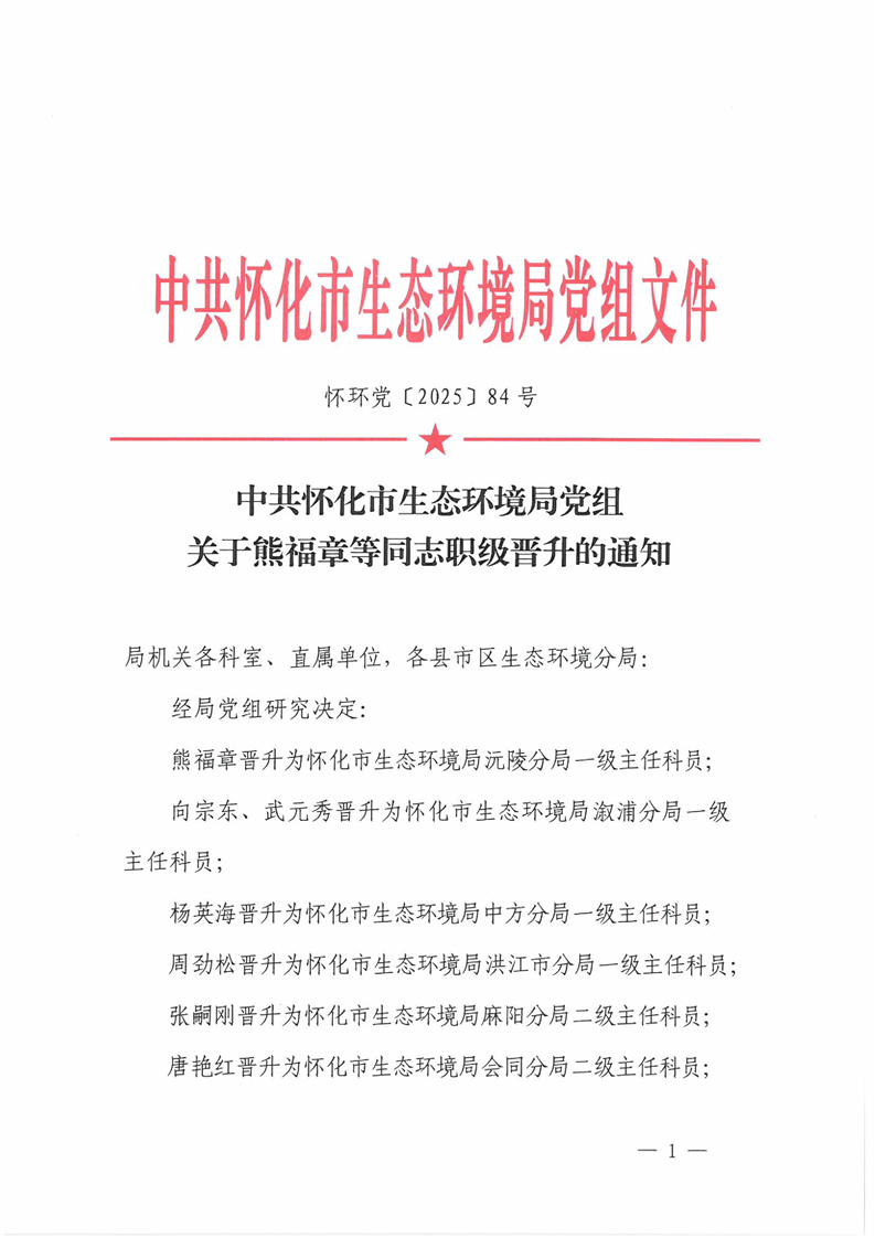 关于熊福章等同志职级晋升的通知(怀环党〔2025〕84号)