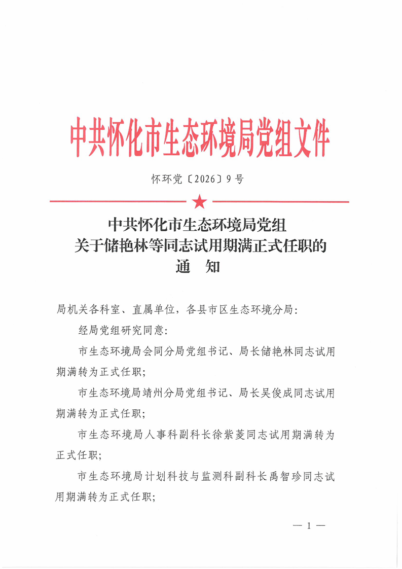 关于储艳林等同志试用期满正式任职的通知